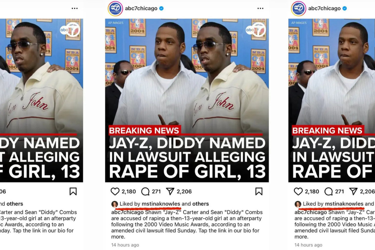 Η ανάρτηση στο Instagram που έκανε like η πεθερά του Jay-Z περιλάμβανε μια φωτογραφία των Kάρτερ και Κομπς με τον τίτλο Breaking News: Jay-Z, Diddy Κατηγορούνται για Βιασμό 13χρονου Κοριτσιού.