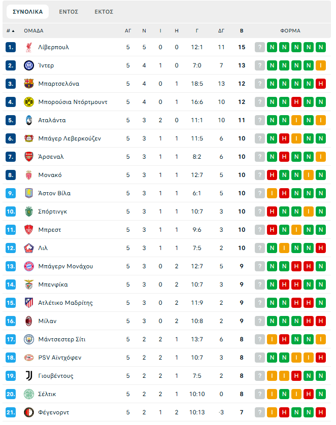 Το πρόγραμμα της 6ης αγωνιστικής στην League Phase του Champions League: