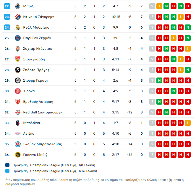 H League Phase του Champions League κάνει (10 και 11/12) το πρώτο από τα τρία τελευταία της βήματα 26/27 Νοεμβρίου.
