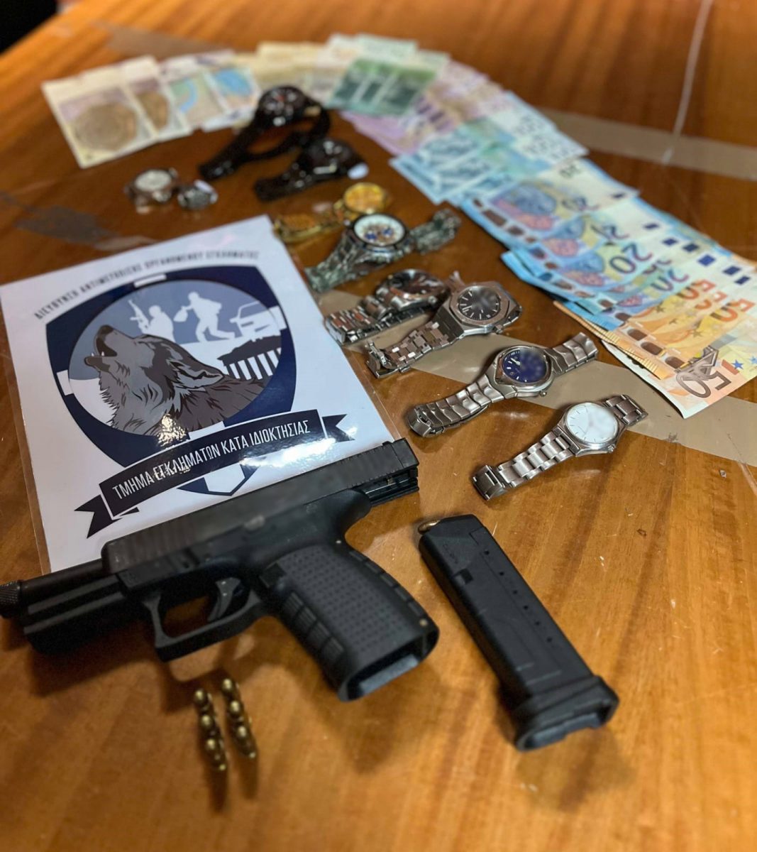 Εκτός από τα όπλα κατά τις έρευνες της ΕΛ.ΑΣ. σε διάφορα σημεία εντοπίστηκαν ρολόγια, χρηματικά ποσά και πλήθος κινητών τηλεφώνων.