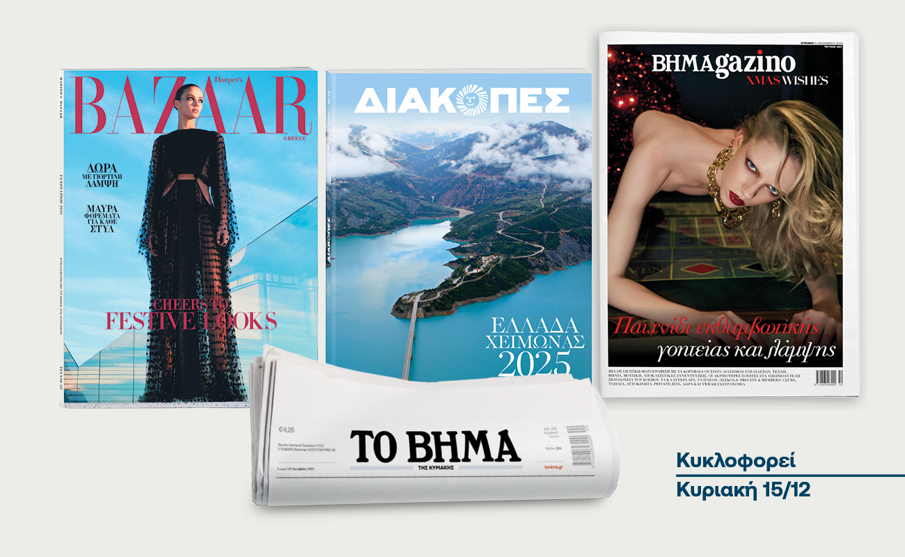 Στις 15 Δεκεμβρίου το «Βήμα της Κυριακής» κυκλοφορεί με συναρπαστικές προσφορές: Ο χειμερινός οδηγός Διακοπές 2025, το περιοδικό μόδας Harper’s Bazaar, και όπως κάθε Κυριακή, ΒΗΜΑGAZINO.
