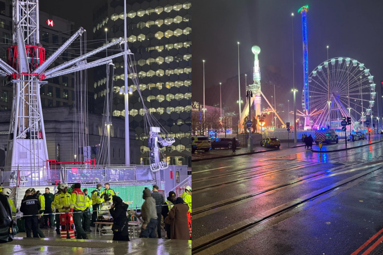 12.20.2024: A festive fairground ride «failed and crashed» in Birmingham city centre, leaving several people requiring medical assistance, emergency services have confirmed. The ‘Star Flyer’ ride dropped to ground level “whilst in operation” in Centenary Square. pic.twitter.com/qtVIGsRZkR