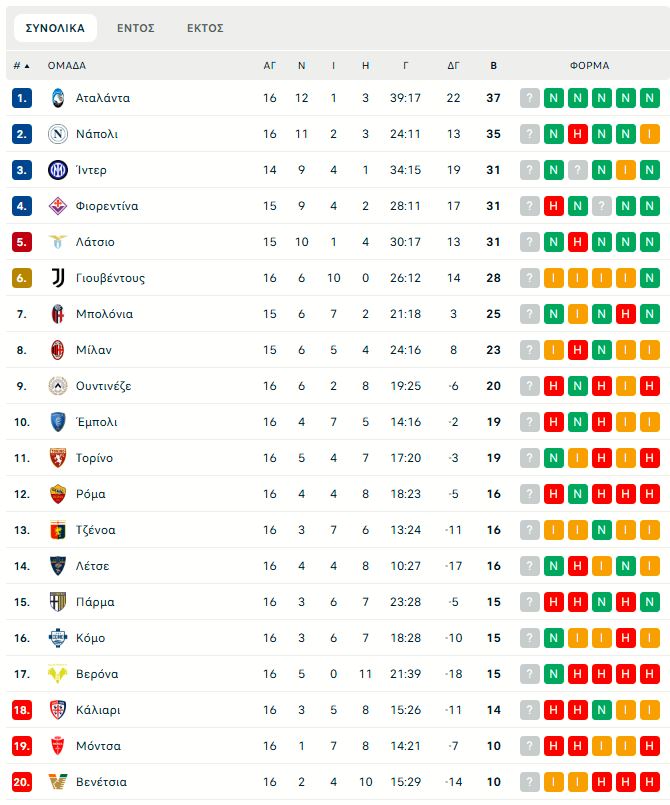 22/12 16:00 Βενέτσια – Κάλιαρι
