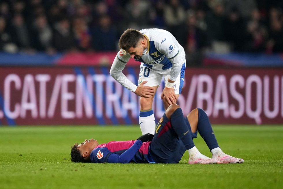 Ο Λαμίν Γιαμάλ που τραυματίστηκε στον αγώνα με τη Λεγανές, ζήτησε την αλλαγή στο πρώτο ημίχρονο, αν και τελικά επέλεξε να περιμένει μέχρι το ημίχρονο για να τον εξετάσουν καλά οι γιατροί. Μπήκε στο δεύτερο ημίχρονο, αλλά έγινε αλλαγή στο 75′ όταν είδε ότι δεν μπορούσε να συνεχίσει άλλο.