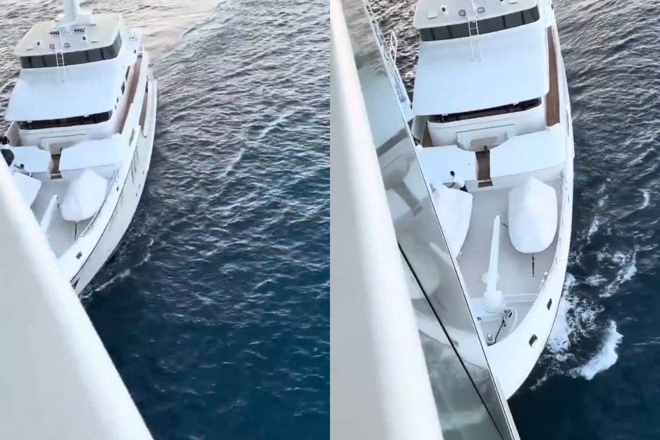 Το πολυτελές γιοτ που φέρει το όνομα Aurora φαίνεται στο βίντεο να πλέει και να πλησιάζει όλο και πιο κοντά στο κρουαζιερόπλοιο. Λίγα δευτερόλεπτα πριν, φαίνεται ένα άτομο στο κατάστρωμά του.