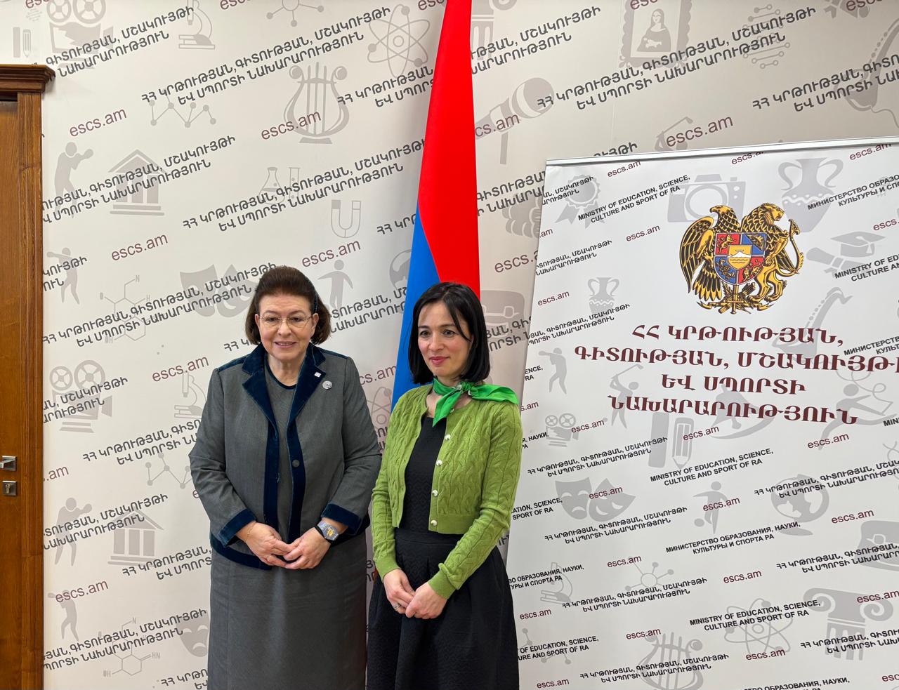 Η Λίνα Μενδώνη με την Υπουργό Παιδείας, Επιστήμης, Πολιτισμού και Αθλητισμού της Αρμενίας