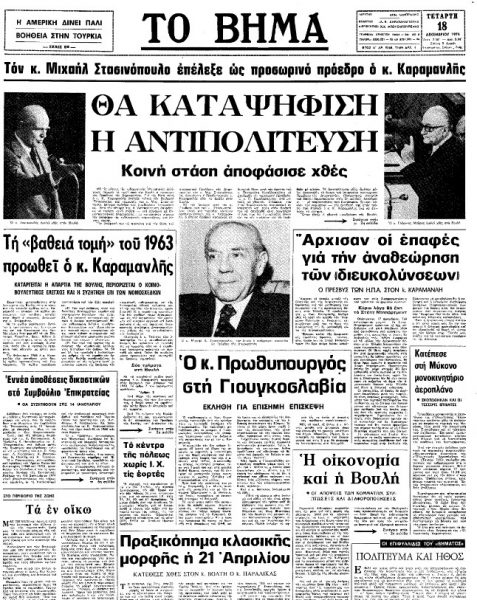 Λίγες ημέρες νωρίτερα, στις 8 Δεκεμβρίου 1974, η συντριπτική πλειοψηφία των Ελληνίδων και των Ελλήνων είχε ταχθεί υπέρ της αβασίλευτης δημοκρατίας, στο δημοψήφισμα που έμελλε να λύσει διά παντός το διαβόητο πολιτειακό ζήτημα στη χώρα μας.