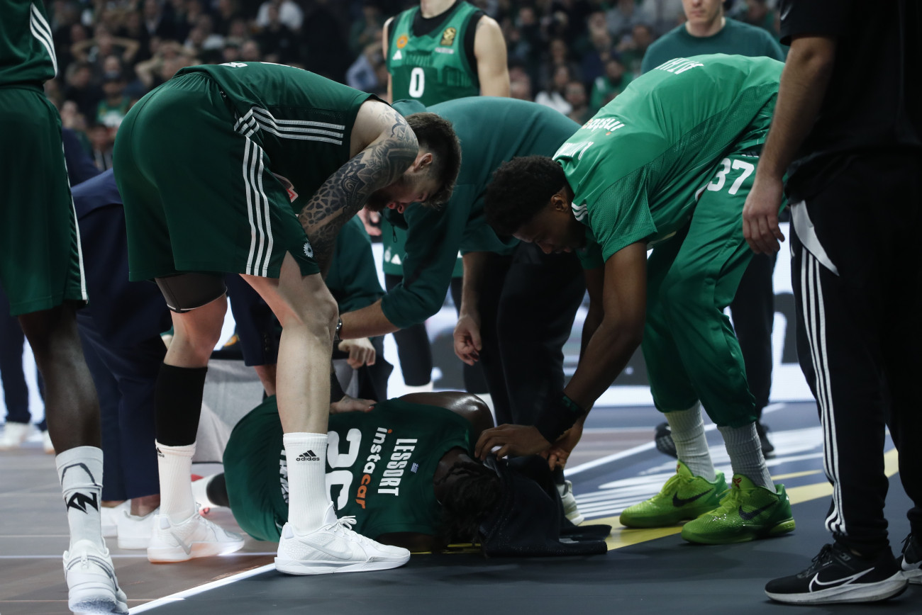 Μετά από περίπου δύο λεπτά ο σέντερ του Τριφυλλιού σηκώθηκε και έτρεξε με κουτσό προς τα αποδυτήρια, με τους ανθρώπους του Παναθηναϊκού να τρέχουν πίσω από τον Γάλλο σέντερ. Απομένει να φανεί το μέγεθος του τραυματισμού του Ματίας Λεσόρ, που είναι από τους καλύτερους παίκτες του Παναθηναϊκού και πέρσι έβαλε φαρδιά πλατιά την υπογραφή του στην κατάκτηση της Euroleague και του πρωταθλήματος.