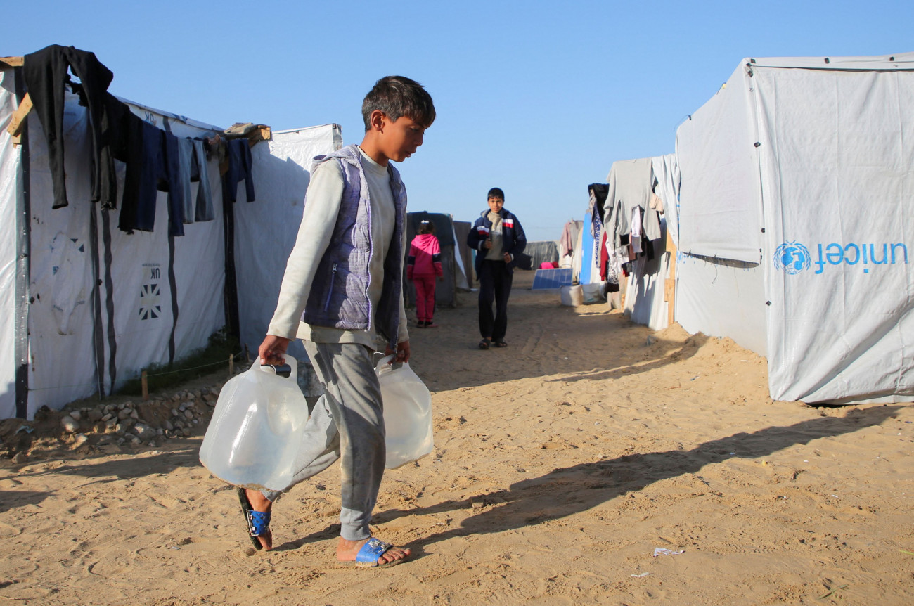 Ένα παιδί μεταφέρει νερό στο Khan Younis. REUTERS/Hatem Khaled