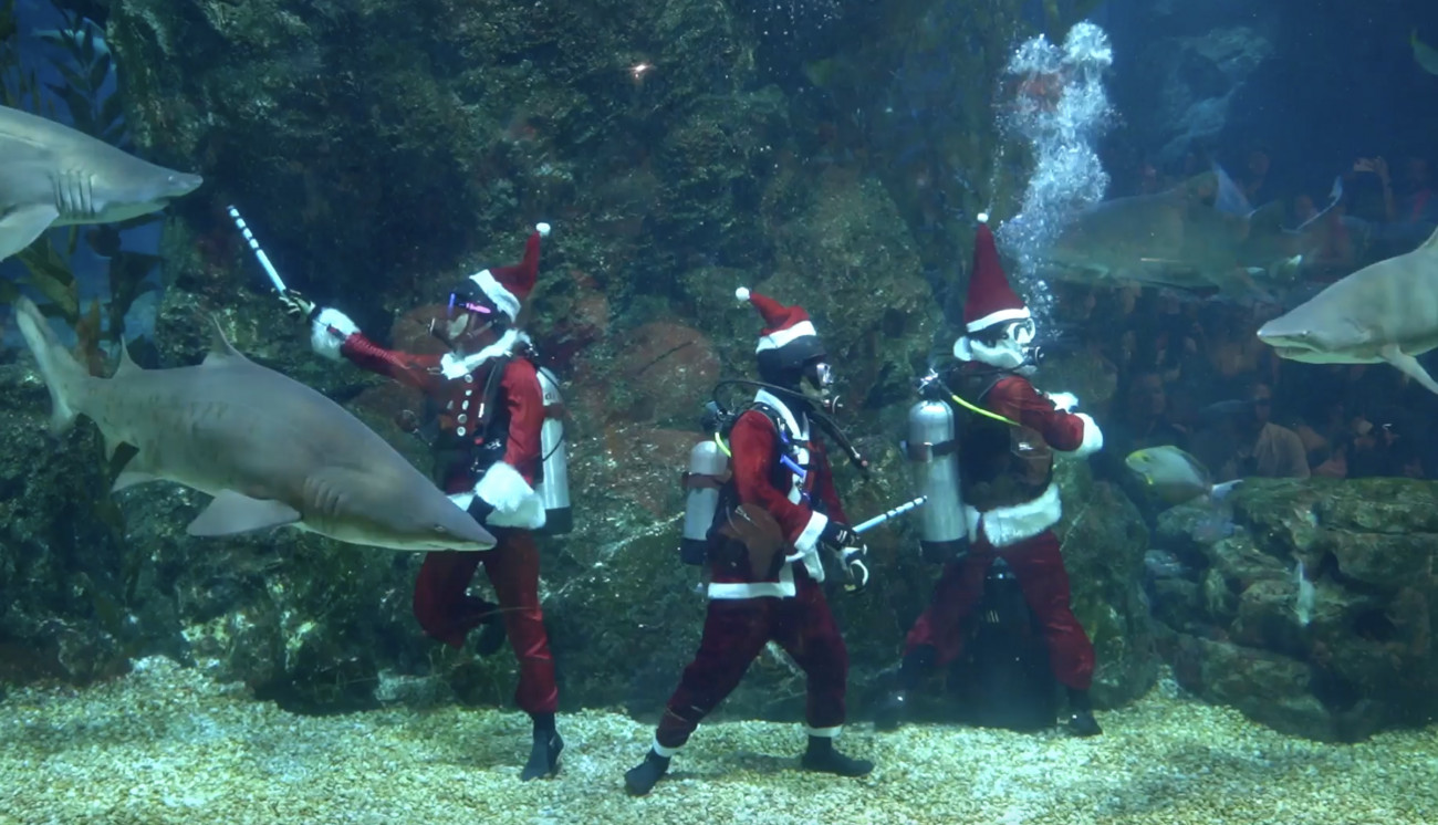 Ένας δύτης, ντυμένος Άγιος Βασίλης, καταδύθηκε στον εντυπωσιακό υποθαλάσσιο κόσμο του ενυδρείου.