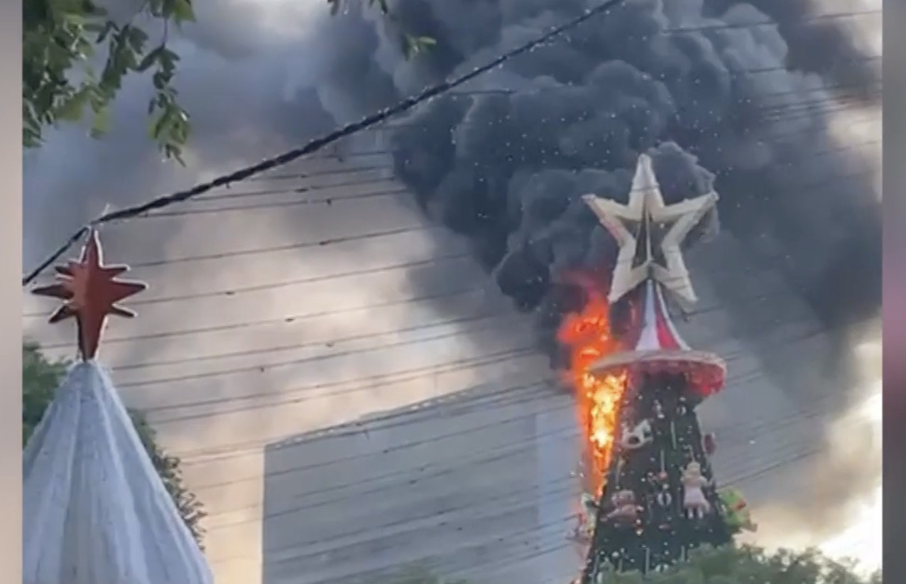 Στις φλόγες τυλίχθηκε το χριστουγεννιάτικο δέντρο στο Largo de São Sebastiao, στο κέντρο του Μανάους.