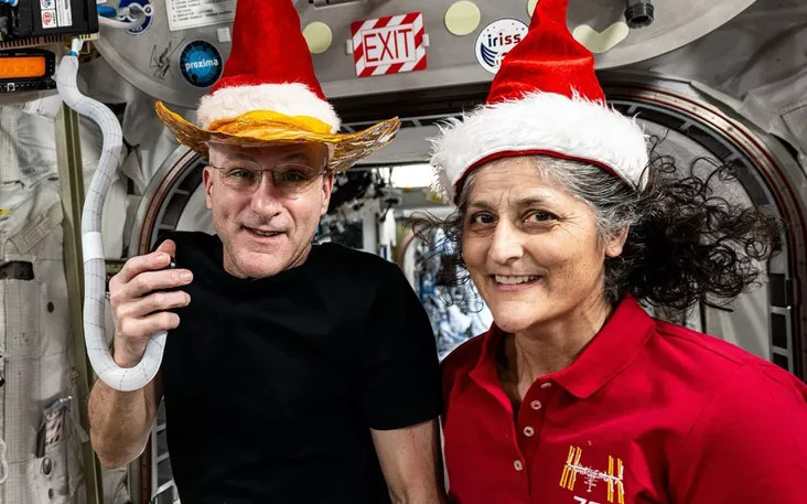 Οι αστροναύτες Suni Williams και Butch Wilmore, που βρίσκονται αποκλεισμένοι στο διάστημα από τον Ιούνιο, πόζαραν με σκούφους του Άγιου Βασίλη.