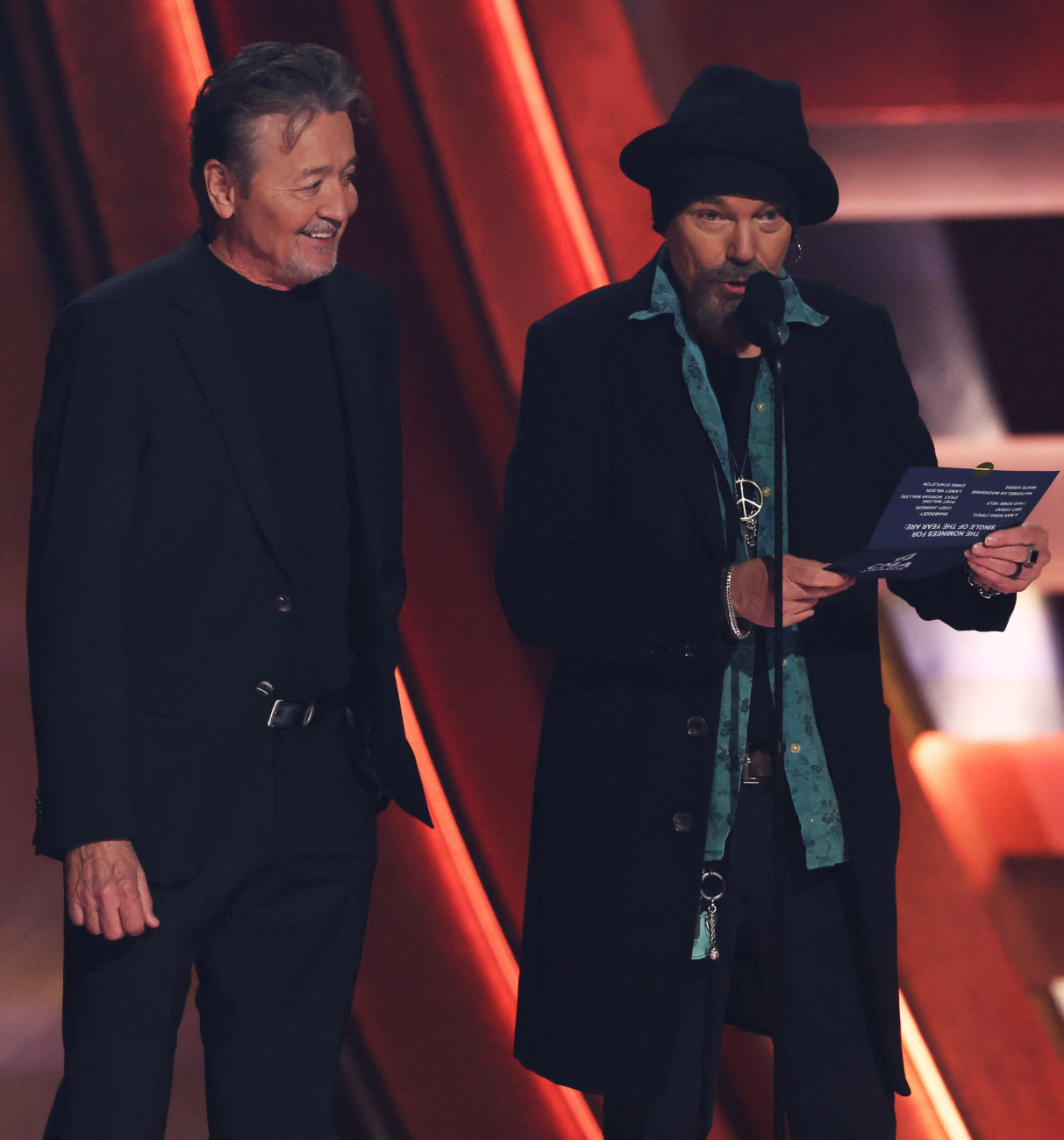 Ο Μαρκ Κόλι και ο Μπίλι Μπομπ Θόρντον παρουσιάζουν το βραβείο Single της χρονιάς στα 58α ετήσια βραβεία CMA, στο Νάσβιλ του Τενεσί, ΗΠΑ, 20 Νοεμβρίου 2024 | REUTERS/Seth Herald