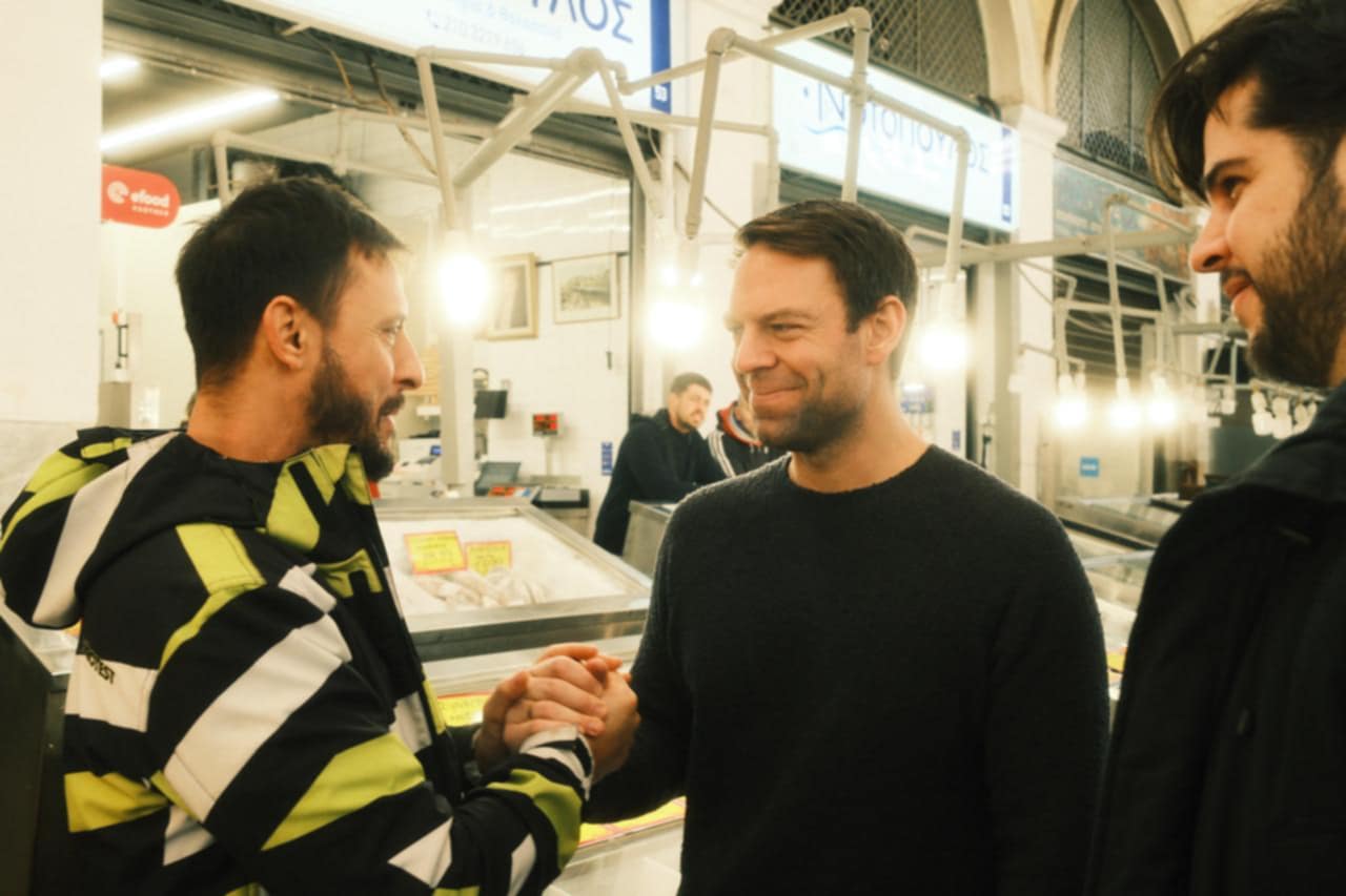 Στιγμιότυπο από την επίσκεψη του Στέφανου Κασσελάκη στη Βαρβάκειο