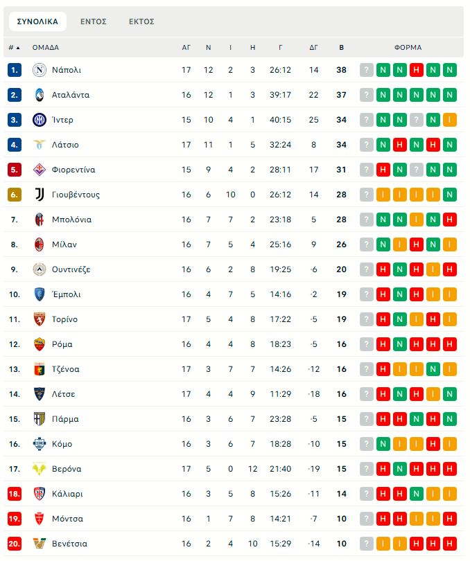 22/12 19:00 Αταλάντα – Έμπολι