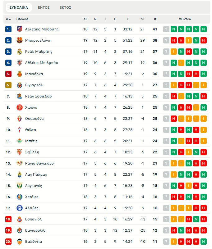 Στη La Liga, η Ατλέτικο Μαδρίτης ήταν η μεγάλη νικήτρια στο ντέρμπι κορυφής με την Μπαρτσελόνα στο «Μοζουίκ» (2-1). Οι Μπλαουγκράνα άνοιξαν το σκορ στο 30’ με τον Πέδρι, αλλά η ομάδα του Ντιέγκο Σιμεόνε πήρε το διπλό με γκολ του Ντε Πολ στο 60’ και Σόρλοθ στο 90+6’ (δείτε εδώ τα highlights).