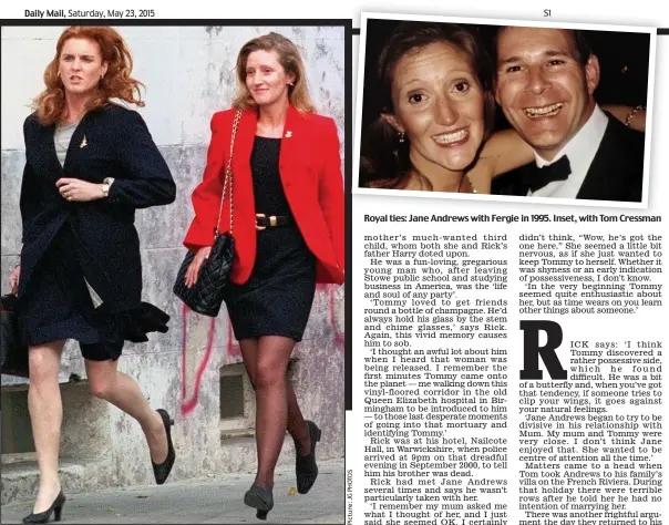 Όπως και η Jane, έτσι και η Fergie στάθηκε στο πλευρό της φίλης της σε αυτήν τη σκοτεινή περίοδο. Σιγά-σιγά, οι δύο γυναίκες άρχισαν να «συγχωνεύονται» και να γίνονται «μία». Δεν πήγαιναν πουθενά χωριστά και είχαν τους ίδιους φίλους, τις ίδιες ασχολίες και τα ίδια στέκια. Όταν έγινε γνωστό πως η Jane Andrews έβγαινε κρυφά με έναν πρώην σύντροφο της Fergie, τον Κόμη Gaddo della Gherardesca, τα δημοσιεύματα μιλούσαν πια για μια ζηλόφθονη κι εμμονική γυναίκα, που ήθελε να γίνει δούκισσα στη θέση της δούκισσας. Η αποκάλυψη αυτή έβαλε τέλος στη φιλία και την επαγγελματική τους συνεργασία μετά από περίπου μια δεκαετία.