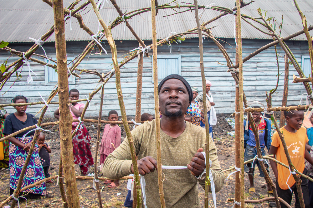 Ο Έρικ, 25 ετών, έφτασε από τη Μινόβα. Αποφασισμένος να προστατεύσει την οικογένειά του και ανησυχώντας για την κατάσταση της υγείας των γονιών του, άρχισε αμέσως να κατασκευάζει μια σκηνή για αυτούς. – Φεβρουάριος 2024- Λαϊκή Δημοκρατία του Κονγκό.