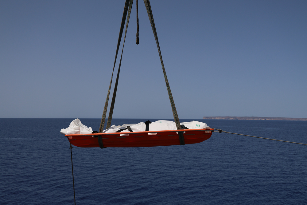 Στις 8 Ιουνίου 2024, μετά από οδηγίες των ιταλικών αρχών, οι 11 σοροί που είχαν ανασυρθεί από τη Μεσόγειο Θάλασσα την προηγούμενη ημέρα, μεταφέρθηκαν από την ομάδα του Geo Barents σε σκάφος της ιταλικής ακτοφυλακής κοντά στη Λαμπεντούζα. Ιούνιος 2024-Μεσόγειος Θάλασσα.