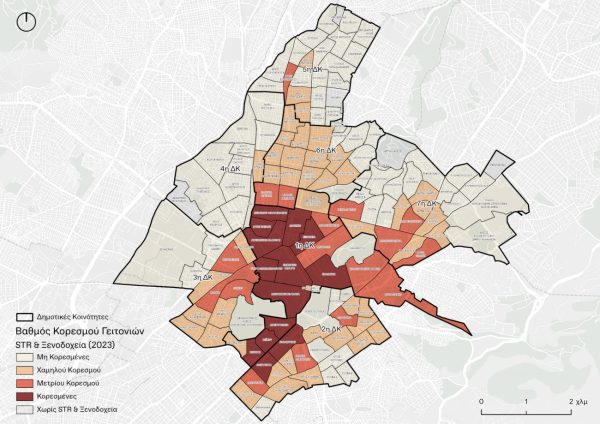 Τάσεις τουριστικοποίησης – πιέσεις παρατηρούνται στις γειτονιές μέτριου και χαμηλού κορεσμού (Δουργούτι, Φωκίωνος Νέγρη, Κάτω Πατήσια, Άγιος Νικόλαος, Αμπελόκηποι), με αντίστοιχες σημαντικές επιπτώσεις στο βιοτικό επίπεδο και την αγορά.