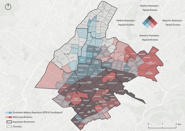 Ταυτόχρονα, σε 27 γειτονιές συνδυάζονται υψηλές τιμές κορεσμού με υψηλές μέσες τιμές ενοικίων.