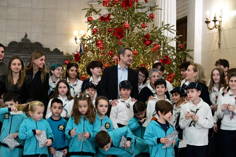 Στο Μέγαρο Μαξίμου ο πρωθυπουργός Κυριάκος Μητσοτάκης μαζί με τη σύζυγό του και τα παιδιά τους άκουσαν παραδοσιακά κάλαντα των Χριστουγέννων και αντάλλαξαν δώρα σύμφωνα με το εθιμοτυπικό.