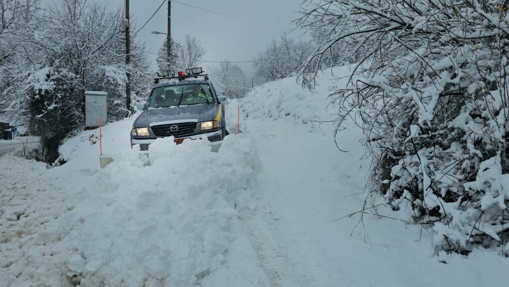 Πυκνό χιόνι στην Οίτη και τα ορεινά χωριά στη Λαμία
