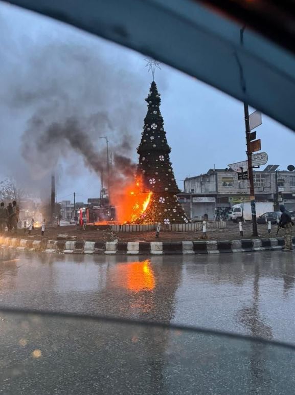 Το κάψιμο χριστουγεννιάτικου δέντρου στην πόλη Σουκεϊλαμπίγια, ξεσήκωσε τους χριστιανούς της Συρίας.