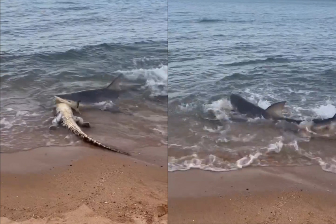 Καρχαρίας κατασπαράζει κροκόδειλο σε παραλία της Αυστραλίας μπροστά στα μάτια λουόμενων