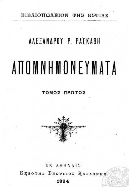 Ανοίγουμε τον πρώτο τόμο των Απομνημονευμάτων του. Στο βασίλεμα της ζωής του ο Αλέξανδρος Ραγκαβής θυμάται τα παιδικά του χρόνια. Έτσι αναπολεί και την ανακήρυξη ως ηγεμόνα της Βλαχίας του θείου του πατέρα του, του Αλεξάνδρου Σούτζου, και το ταξίδι που έκαμε ο ίδιος ο Ραγκαβής με τους γονείς του στην Επικράτεια του θείου του ηγεμόνα.