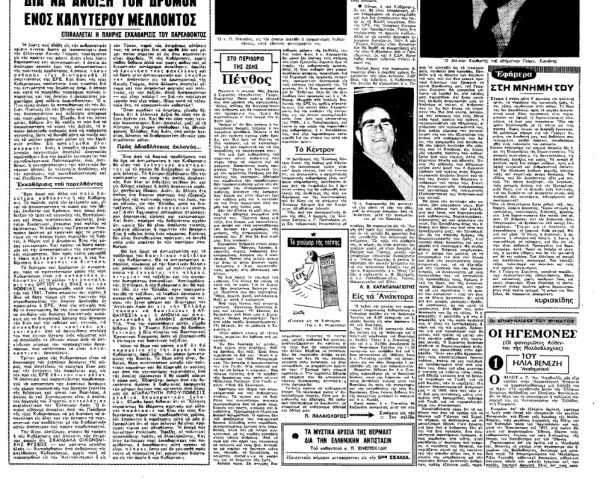*Επιφυλλίδα του ακαδημαϊκού Ηλία Βενέζη, που έφερε τον τίτλο «Οι ηγεμόνες» και είχε δημοσιευτεί στην εφημερίδα «Το Βήμα» την Τρίτη 18 Ιουνίου 1963.