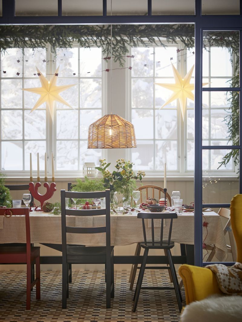 Ο κύριος χώρος των συγκεντρώσεων που είναι φυσικά το σαλόνι γίνεται το επίκεντρο της γιορτής, με ένα χριστουγεννιάτικο δέντρο γεμάτο μπάλες, στολίδια, και φωτάκια, ενώ οι ζεστές γωνιές του σπιτιού αποκτούν ιδιαίτερο χαρακτήρα χάρη στα κεριά και τα φωτιστικά IKEA. Δεν παραλείπουμε να διακοσμήσουμε το τραπέζι με αντικείμενα που ζεσταίνουν την ατμόσφαιρα και κάνουν κάθε γεύμα ή δείπνο ξεχωριστό. Συνδυάστε λειτουργικότητα και αισθητική, και γεμίστε το σπίτι σας με την αγάπη και τη μαγεία των Χριστουγέννων.