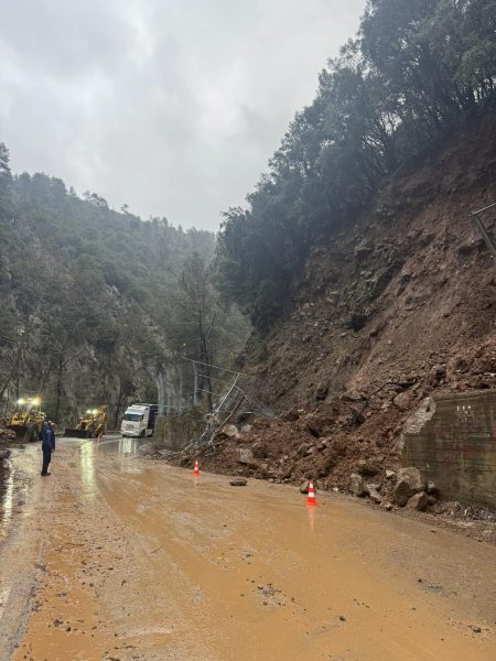 Εκ περιτροπής η κίνηση των οχημάτων στο Δερβένι λόγω κατολίσθησης.