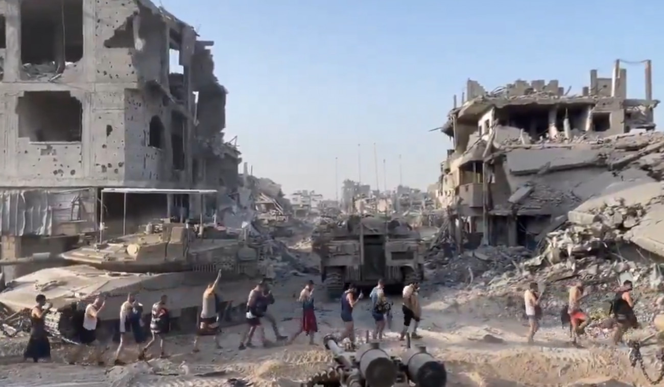 Συνόδευσε την ανάρτησή της με ένα βίντεο που δείχνει Παλαιστίνιους που φορούν μόνο τα εσώρουχά τους να περπατούν με τα χέρια υψωμένα ανάμεσα σε ισραηλινά άρματα μάχης.