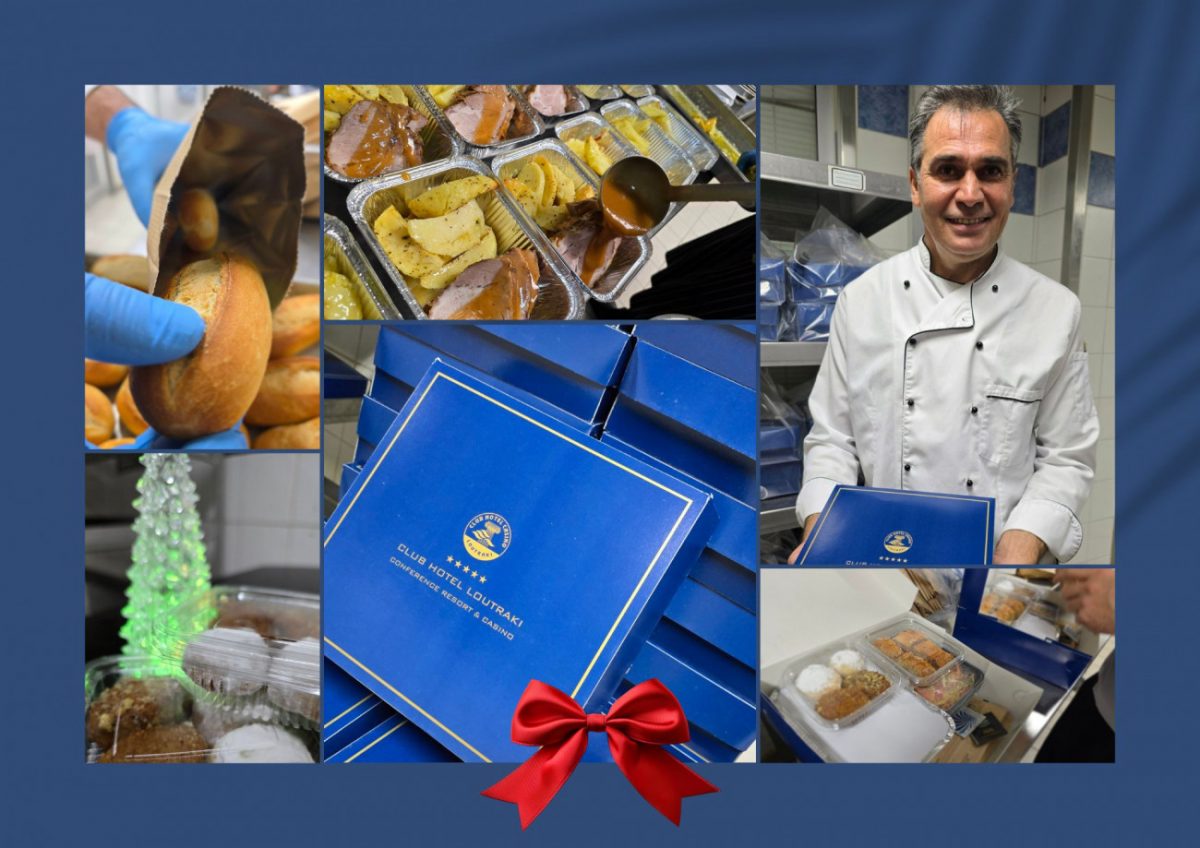 Η ομάδα του Club Hotel Casino Loutraki ετοίμασε και παρέδωσε στον Αντιδήμαρχο Κοινωνικής Πολιτικής και Αθλητισμού του Δήμου κ. Αθανάσιο Παπαθανασίου, 110 μερίδες εορταστικού γεύματος πλήρους μενού. Πιο αναλυτικά, το μενού επιμελήθηκε ο executive chef του Club Hotel Casino Loutraki, κ. Κωνσταντίνος Ζουμπορλής και περιλάμβανε χειμερινή σαλάτα, χοιρινό ψητό σε σάλτσα κρασιού με ριγανάτες πατάτες, μπακλαβά και σαραγλί, κουραμπιέδες και μελομακάρονα. Η παράδοση πραγματοποιήθηκε στις εγκαταστάσεις της εταιρείας, την Παρασκευή 27 Δεκεμβρίου 2024. Η διανομή των γευμάτων έγινε από τους Προέδρους των Τοπικών Κοινοτήτων, καλύπτοντας τις ανάγκες όλων των ωφελούμενων στις περιοχές του Δήμου.