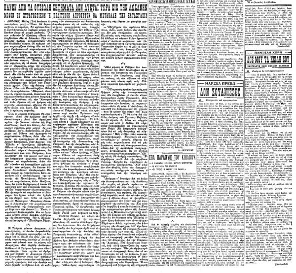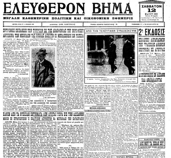 «ΕΛΕΥΘΕΡΟΝ ΒΗΜΑ», 12.5.1923, Ιστορικό Αρχείο «ΤΟ ΒΗΜΑ» & «ΤΑ ΝΕΑ»
