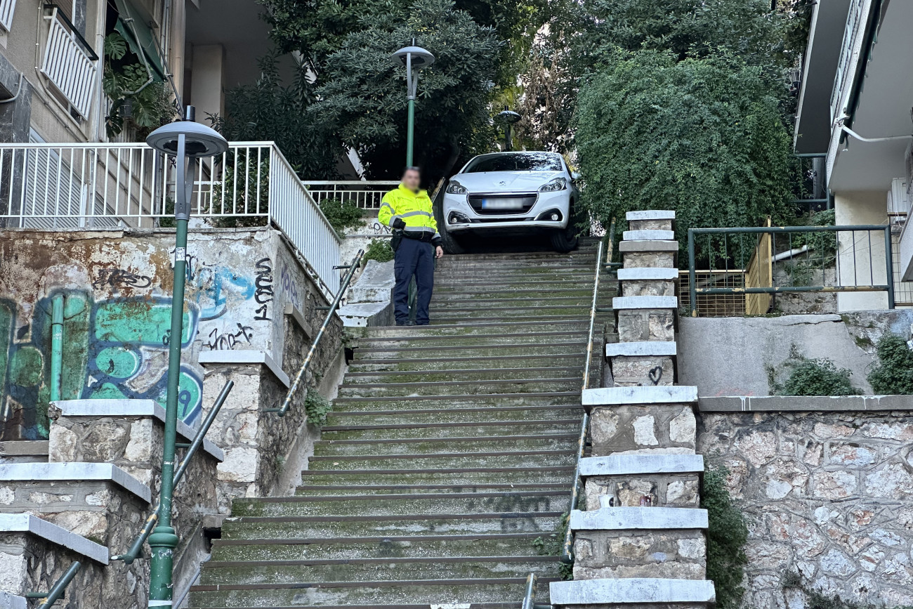 Αυτοκίνητο υπό αδιευκρίνιστες συνθήκες κατέληξε σε δρομάκι με σκαλιά