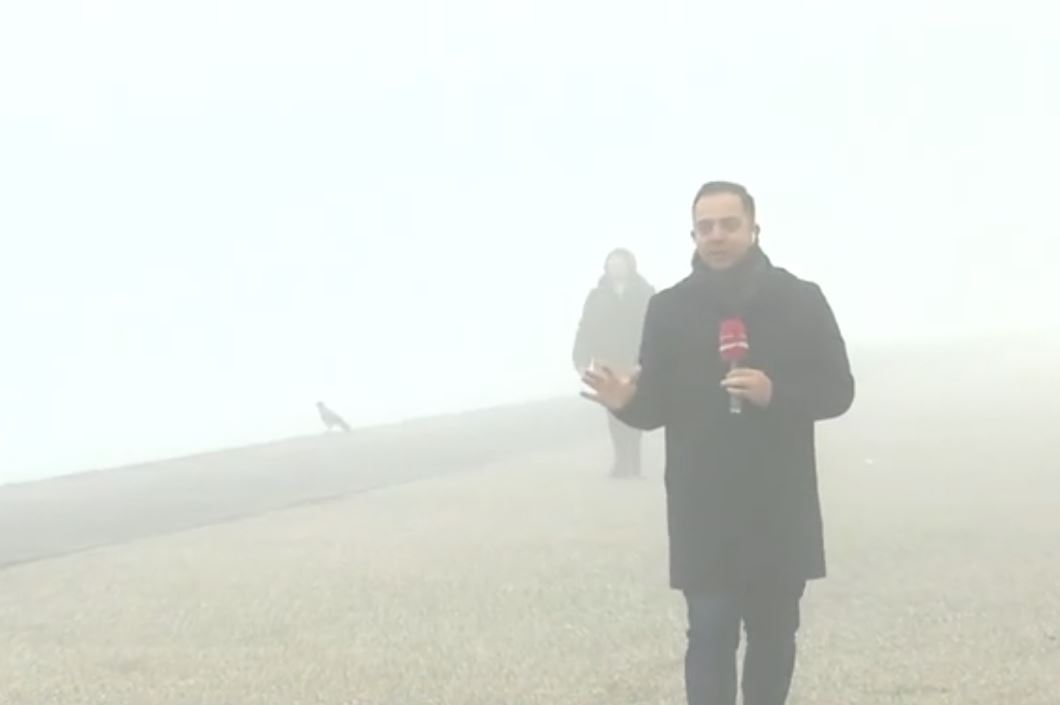 Ο ουρανός είναι καλυμμένος από ένα πυκνό πέπλο ομίχλης, περιορίζοντας σημαντικά την ορατότητα, ανέφερε ο δημοσιογράφος του MEGA τονίζοντας ότι «τώρα δε βλέπουμε τίποτα από το σημείο που βρισκόμαστε πίσω μας».