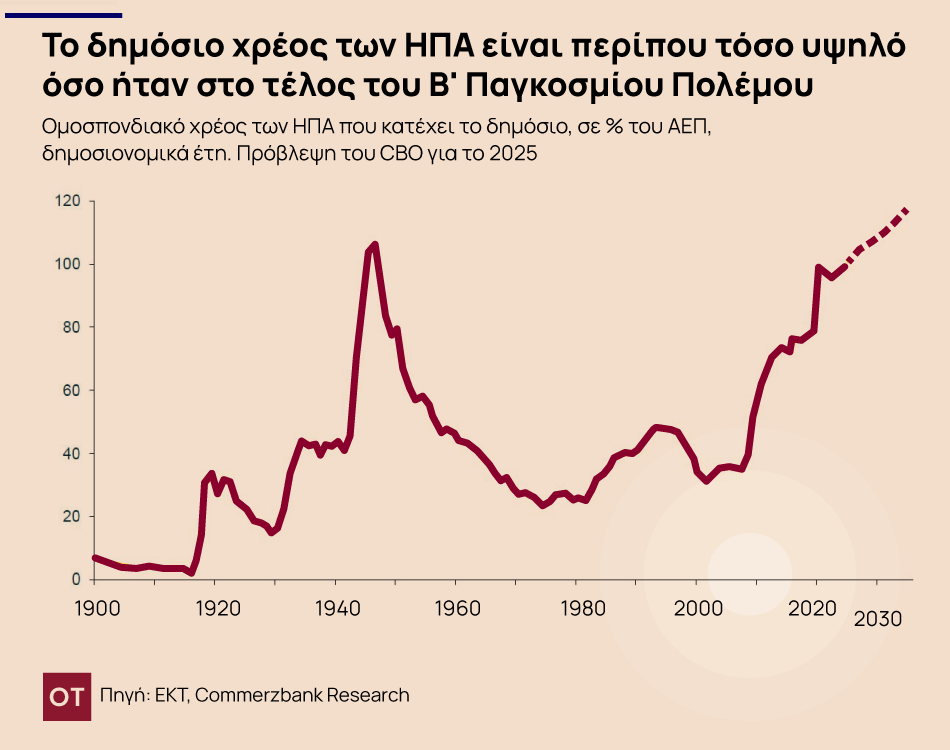 Το δημόσιο χρέος των ΗΠΑ είναι περίπου τόσο υψηλό όσο ήταν στο τέλος του Β’ Παγκοσμίου Πολέμου