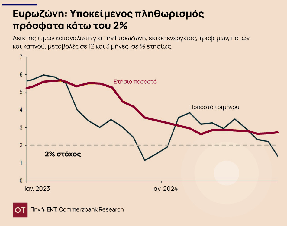 Ευρωζώνη: Υποκείμενος πληθωρισμός πρόσφατα κάτω του 2%