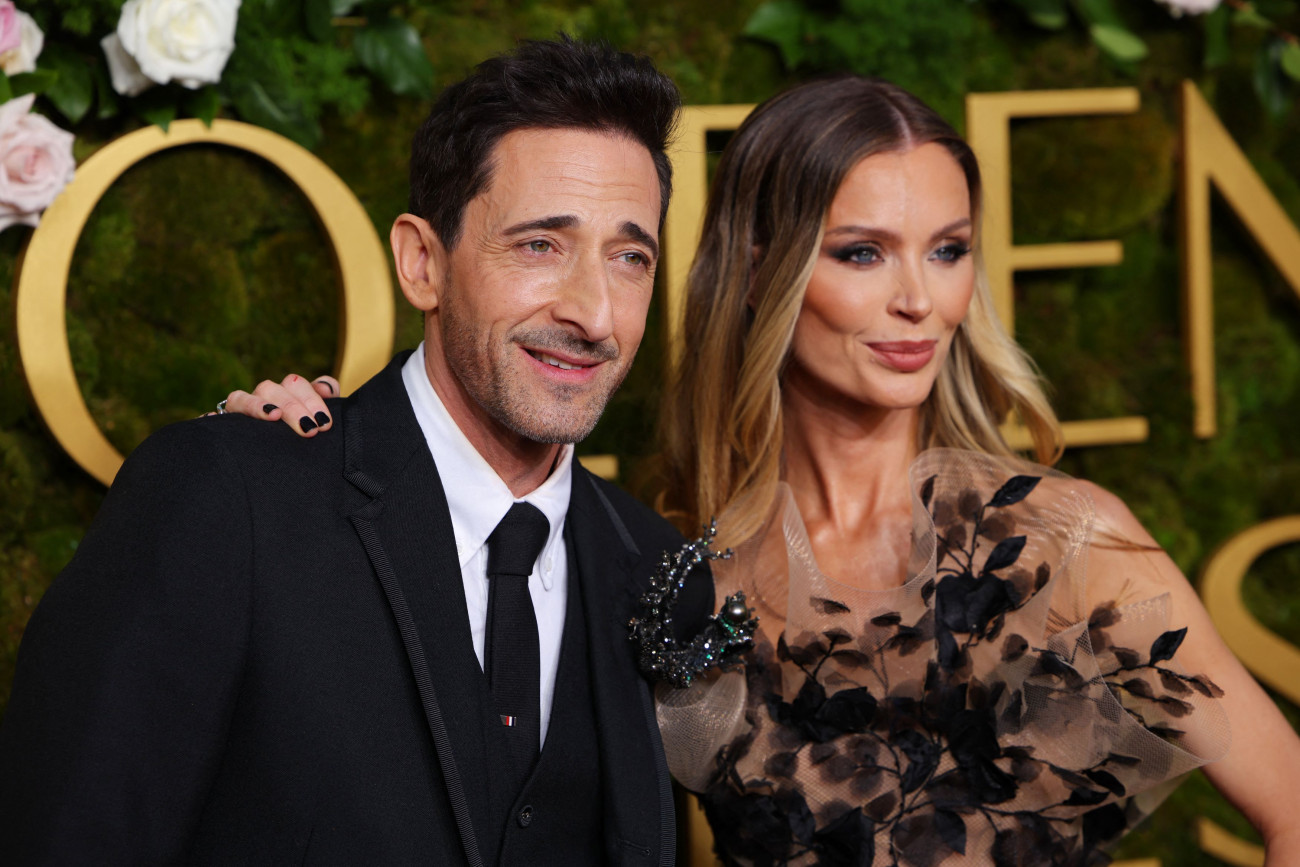 Ο Έιντριεν Μπρόντι με τη σύντροφό του Τζορτζίνα Τσάπμαν στο κόκκινο χαλί στις Χρυσές Σφαίρες.