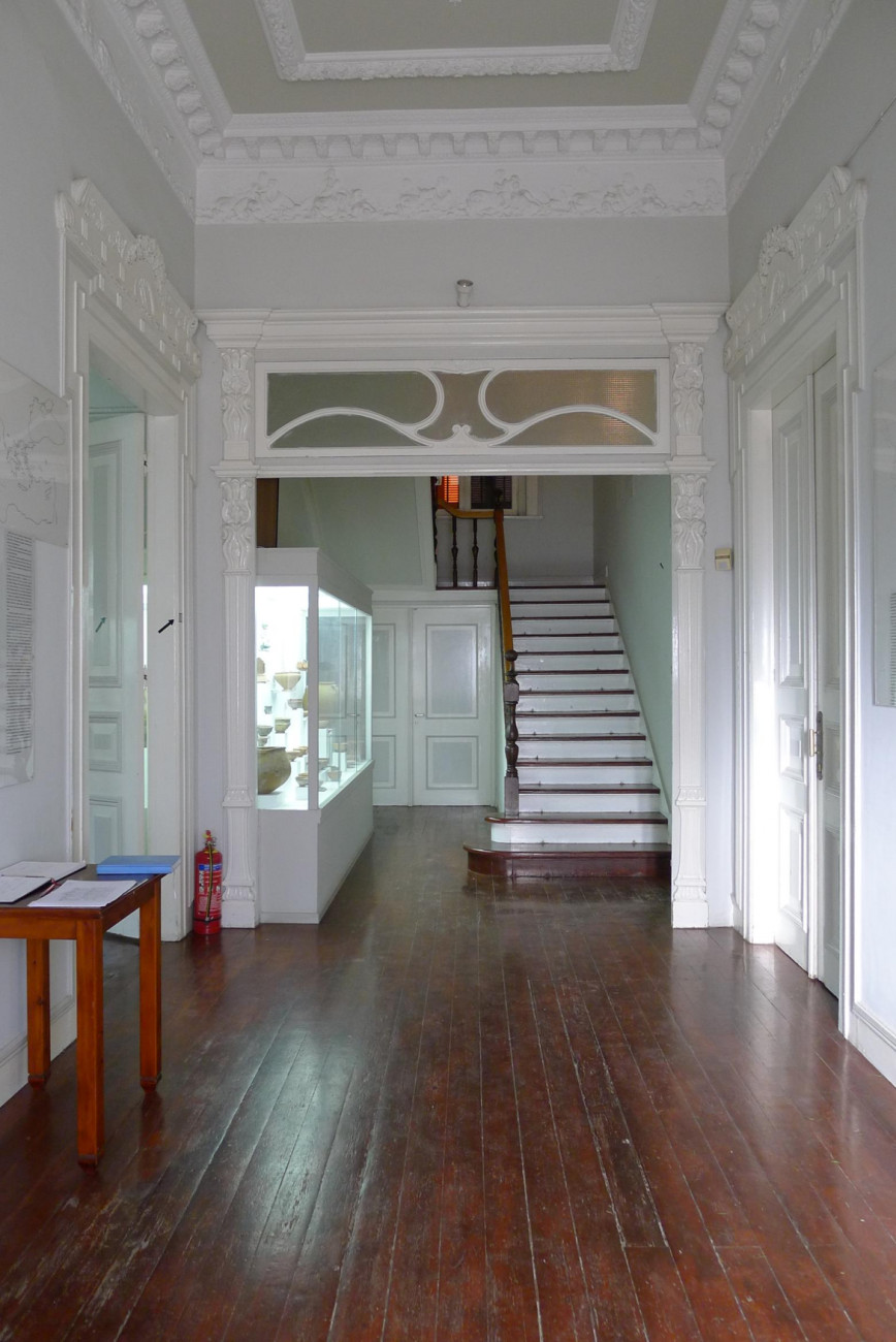 Τα εσωτερικά πατώματα της κατασκευής είναι σε ικανοποιητική κατάσταση. Παρατηρούνται εκτεταμένες βλάβες σε ορισμένους χώρους στον όροφο και στο υπόγειο, σε δάπεδα και τοίχους. Οι προτάσεις συντήρησης αφορούν στα επιχρίσματα, στο ζωγραφικό και ανάγλυφο διάκοσμο (περίτεχνες γύψινες διακοσμήσεις, οροφογραφίες), σε ξύλινα στοιχεία, σε λίθινα στοιχεία, σε δάπεδα με τσιμεντοπλακίδια, μωσαϊκά δάπεδα, μεταλλικά στοιχεία.