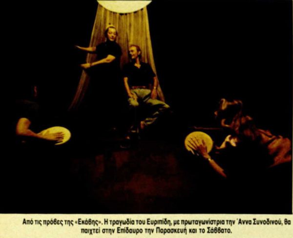 Γι’ αυτό κι εγώ χαίρομαι τώρα που η Συνοδινού ξαναγυρίζει στην Επίδαυρο. Γιατί ο χώρος δικαιωματικά της ανήκει. Και ξέρετε, ε; Η «επιστροφή» της (με το «Προσκήνιο» του Αλέξη Σολομού, στις 14 και 15 Αυγούστου) γίνεται με το ίδιο έργο —την «Εκάβη» του Ευριπίδη— που είχε εγκαινιάσει επίσημα το πολύπαθο αυτό Φεστιβάλ το 1955. (Τότε η Κατίνα Παξινού έπαιξε την τραγική βασίλισσα της Τροίας και η Συνοδινού την Πολυξένη.)