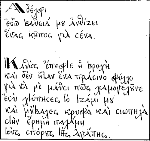 Οι πρώτοι στίχοι της «Προσφοράς», καλλιγραφημένοι από τον ίδιον τον Ρίτσο