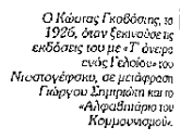 Ο Κώστας Γκοβόστης είναι ίσως μια τυπική περίπτωση Έλληνα εκδότη. Για να βγει καλό βιβλίο με τα μέσα που υπάρχουν, με τις πολιτικές διακυμάνσεις κι αντιξοότητες, δεν είναι καν αρκετό να θυσιάσεις μία μόνο ζωή.