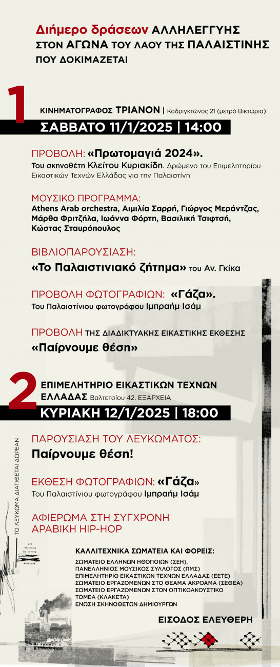 Διήμερο δράσεων υπέρ της Παλαιστίνης – Τα Καλλιτεχνικά Σωματεία παίρνουν θέση