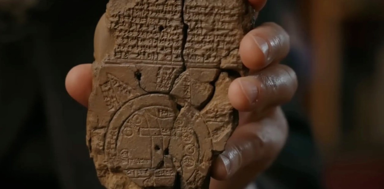 Αυτή η πινακίδα, που θεωρείται ο αρχαιότερος χάρτης του κόσμου, ανακαλύφθηκε το 1882 στο Ιράκ και φυλάσσεται στο Βρετανικό Μουσείο.