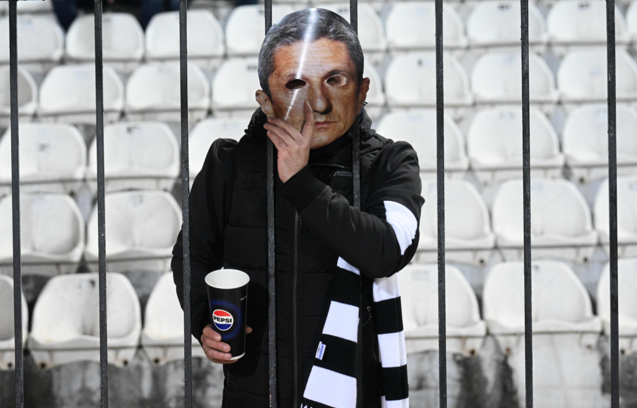 Για τον λόγο οι φίλοι του «δικεφάλου του Βορρά» αποφάσισαν να φορέσουν μάσκες με το πρόσωπο του τεχνικού τους ώστε να στείλουν ένα μήνυμα στήριξης προς τον 55χρονο.