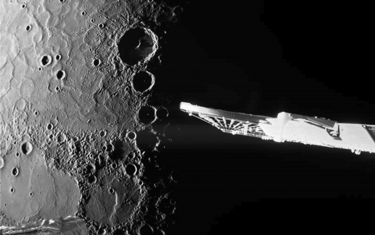 Η πρώτη εικόνα ελήφθη την ώρα που το BepiColombo περνούσε τη γραμμή που χωρίζει τη μέρα από τη νύχτα.