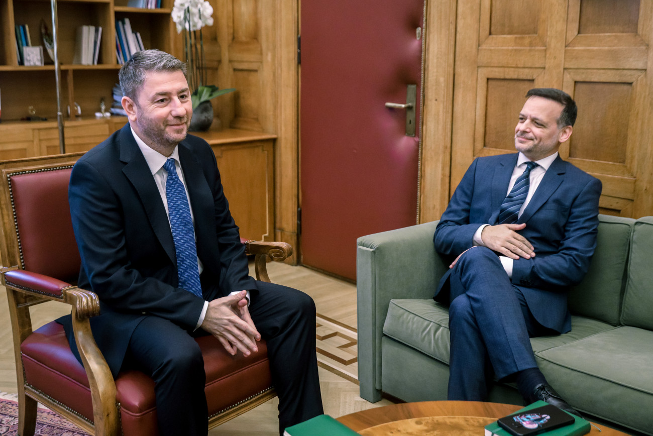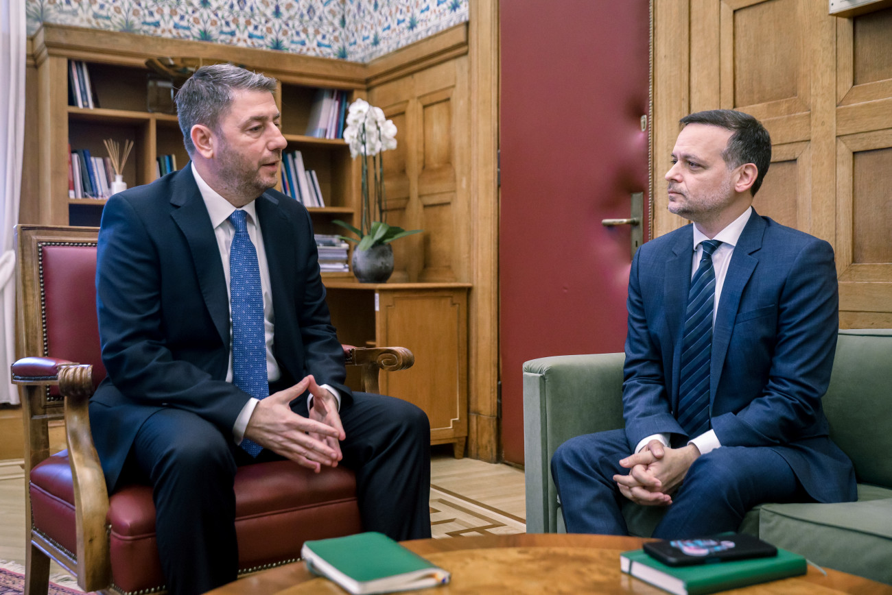 Ο Νίκος Ανδρουλάκης συναντήθηκε με τον δήμαρχο Αθηναίων Χάρη Δούκα στα γραφεία του προέδρου του ΠΑΣΟΚ - Κινήματος Αλλαγής
